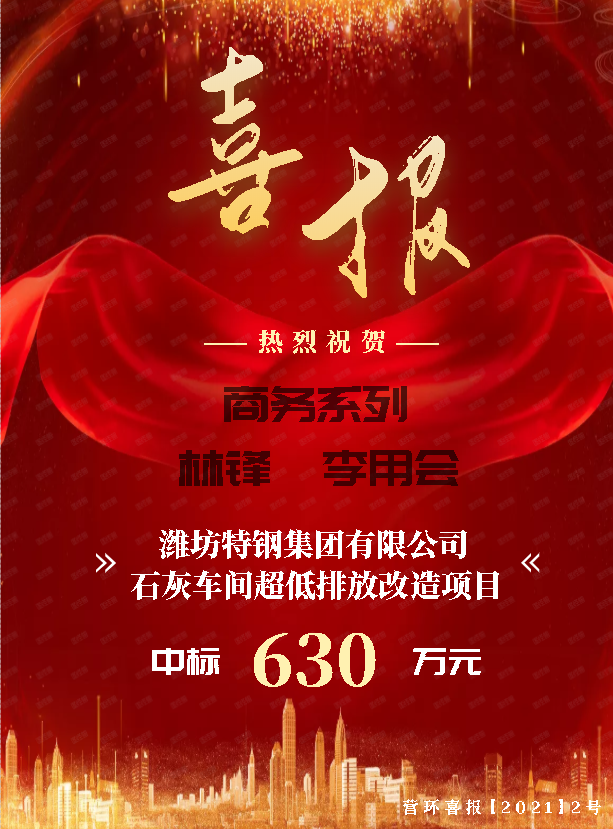 營口市環(huán)境工程開發(fā)有限公司中標(biāo)濰坊特鋼集團(tuán)有限公司石灰車間超低排放改造項目